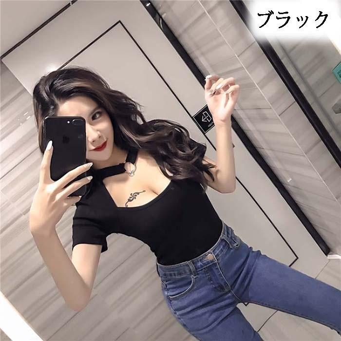 胸開き tシャツ 半袖 Vネック ニット タートルネック セーター レディースファッション タートル 胸開きタート セクシー ベアトップ 韓国風 胸元 解禁シャツ